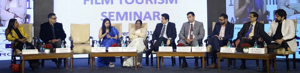 The panel for the Film Tourism Seminar included Sandeep Marwah, Owner-Marwah Studios and Founder Noida Film City; Aashish Singh, Vice President- Yashraj Productions; Khyati Nayak, Head-Film Facilitation, Tourism Corporation of Gujarat Ltd; Udayan Baijal, Producer-Jamun Production; Urmila Sant Joint Director General, Archaeological Survey of India; Alok Mathur, Group General Manager-IRCTC; Shubhendu Sarkar, PRO, BSF; Sujoy J Mukherjee, Producer-Filmalaya Pvt Ltd and Kamal Gill, Executive Editor and Managing Director, Gill India Group.